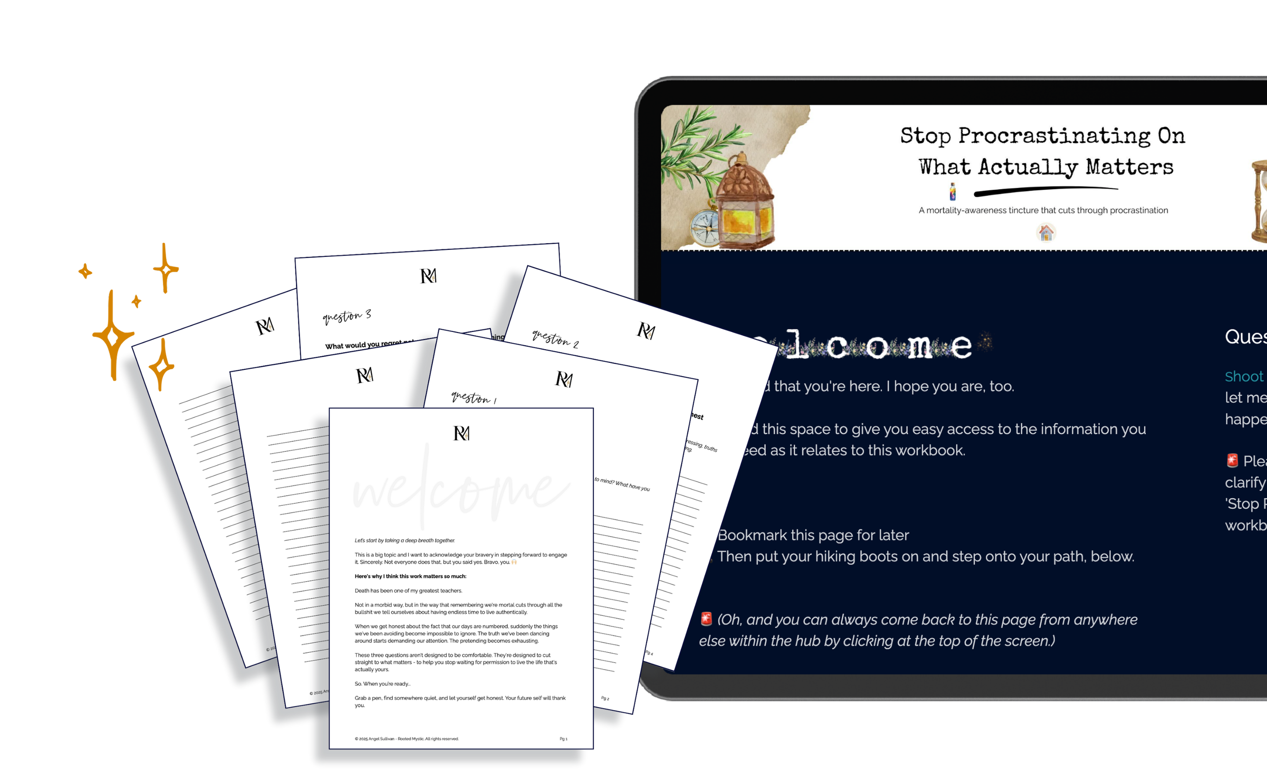 P.S. If working through these questions reveals bigger patterns you want to explore, there’s lots more depth available. But start here. Start with the questions Death would ask you if it were sitting across from you right now.